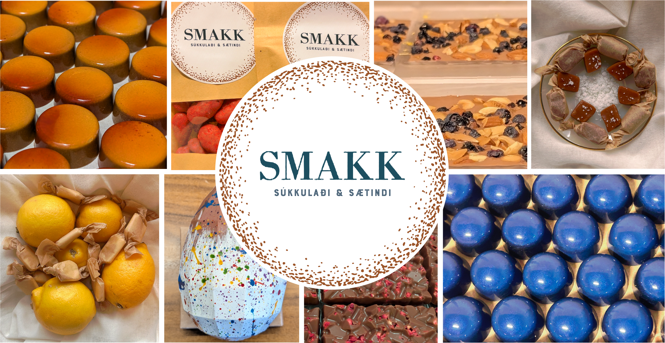 Andri og Kristbjörg eru búsett á Siglufirði og hafa lengi haft áhuga á því að gera fallegt súkkulaði og gómsæta mola. Miklar pælingar þurfti til að ákveða nafn og var lendingin SMAKK þar sem það inniheldur upphafsstafi allra fjölskyldumeðlima ásamt því að vera viðeigandi nafn á vöru sem vonandi smakkast vel.